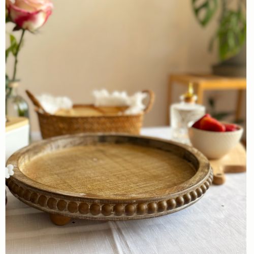 Bandeja Circular de Madera Tallada con Patas de Bolas