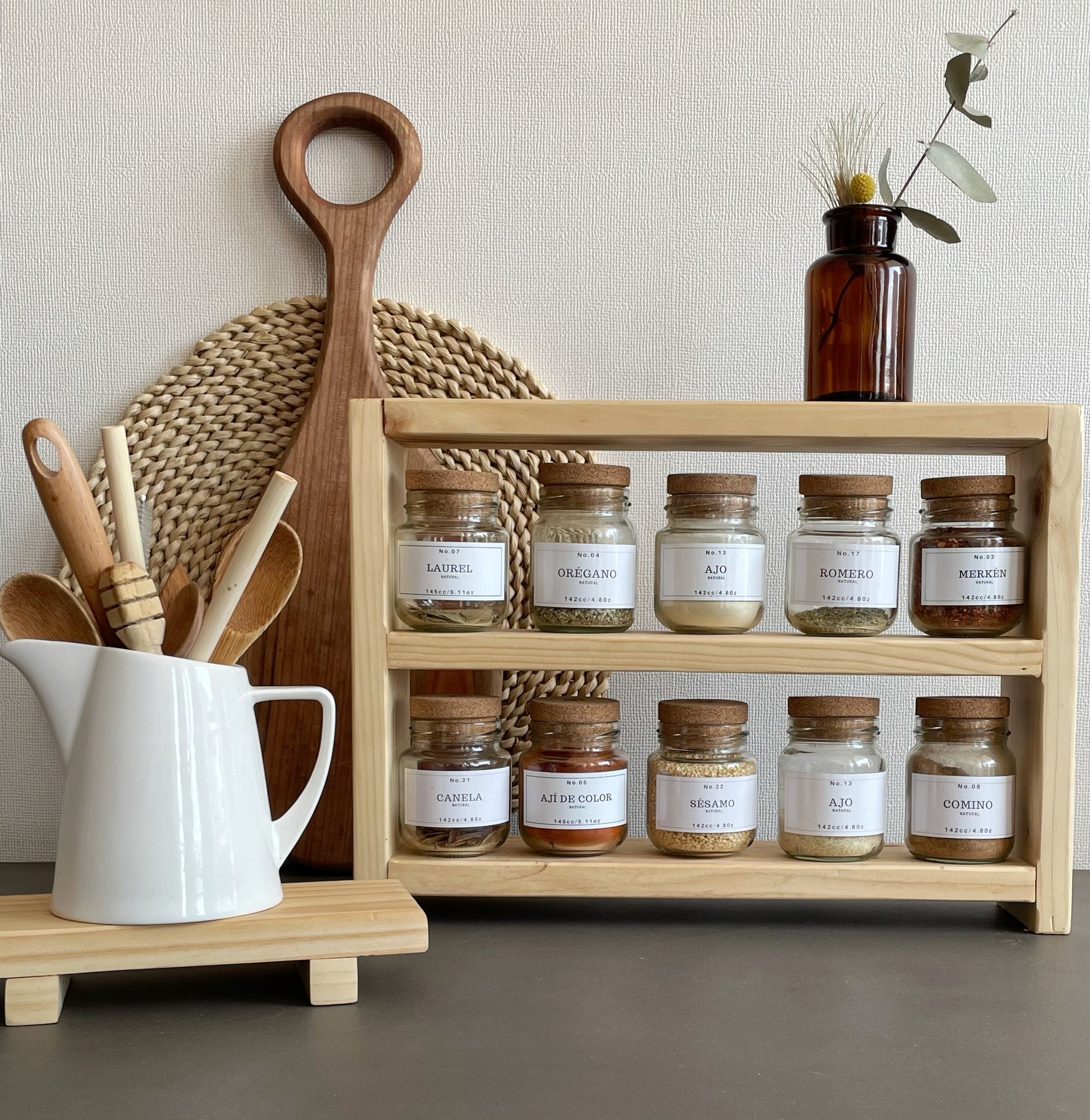 Organiza todas los especieros en esta repisa de madera diseñado para organizar 10 especieros de nuestra linea de corcho Natural, tu cocina con espíritu Bohemio y Natural.