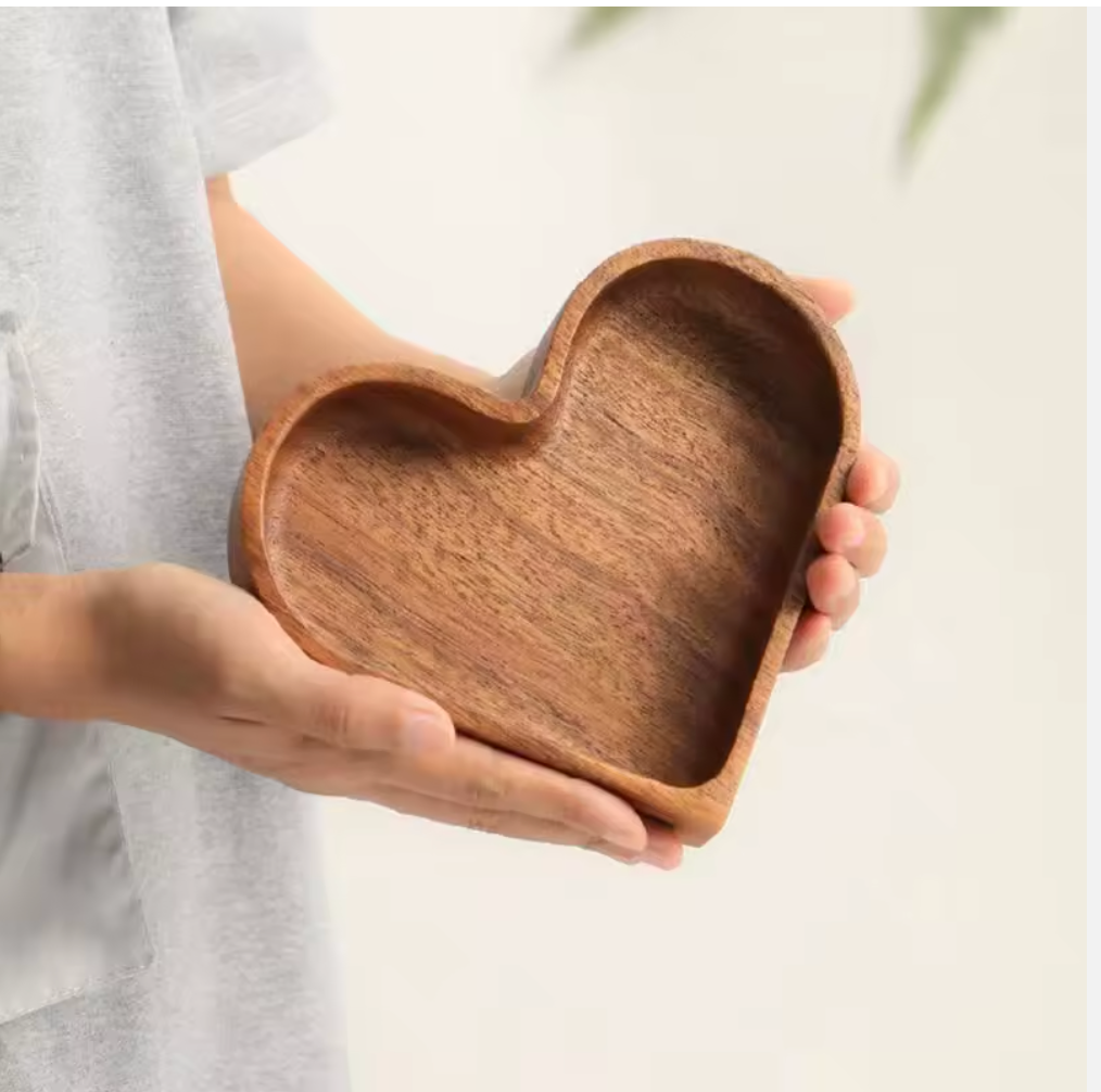 Pack 4 Bandeja de Madera en Forma de Corazón